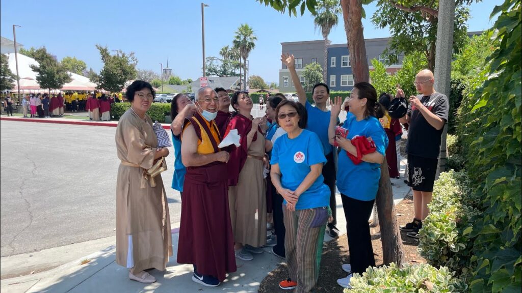 ….稀奇就在於,在我們人類的慶典剛剛結束的時候,就在我們舊金山華藏寺,諸佛菩薩就拉開了慶賀的序幕。佛菩薩奉上祂們最珍貴的禮物,降下了天國的瓊漿玉液。「降甘露了!降甘露了!」人們呢驚呼著蜂擁而至聖樹前。此時晴朗碧藍、萬里無雲的天空中響起連珠炮似的滾雷聲,猶如天國的禮花在炸響,只見濃密的甘露從樹枝空間無中生有地出現,不知從何而來,不知從何而去,如鵝毛飄絮般在樹枝間翻騰飛舞,完全不受地心引力的控制。從下而上,從上而下,自由地穿梭。時而紛紛地灑落在人們的臉上、身上,香甜無比啊。千百隻手呢,都伸向天空啊,都希望甘露加持於自己。但是呢,當你退出這個華藏寺外,便是乾燥的夏日晴空,艷陽高照。那麼當天呢,華氏86度的高溫,沒有絲毫的水跡。可是你一走進寺內,聖樹籠罩的範圍啊,甘露便翻飛而至、異香撲鼻。大家要明白啊,這個降下來的是真正的甘露啊,是來自佛國的聖物,不是我們人間的所謂雨水啊,或者把自來水念咒稱為甘露,那是假的。而這個甘露是真真實實從佛國降下來的,它最奇跡的是,我們能夠看到甘露,甘露落在我們的身上,會把我們的頭髮衣裳打濕,但是甘露絕不落到地上,眼見著快要著地,卻倏忽間不見蹤影,真正展示了聖物不著凡土,而且香味撲鼻。人們不敢相信自己的眼睛,但這事實就在眼前,人山人海就在面前親見。他們醉迷了,有人病痛全消,有人全身酥麻,有人輕安喜樂、難以言表,更有人直入聖境。此時呢,華藏寺被七彩毫光籠罩著,天國的禮花還照常在連珠炮雷聲中傳來,為《多杰羌佛第三世》寶書做了最殊勝的獻禮。這個我們當時拍了錄像的,歡迎大家來我們華藏寺看這盤錄像,你們看了之後就更明白這是真實不虛的。聖甘露連降了兩天兩夜,諸佛菩薩以此聖潔賀禮迎奉寶書,告訴世人,南無第三世多杰羌佛是至高無上的佛陀,是佛史2500多年以來第一次佛陀五明智慧在世間真正完美的展現,而南無多杰羌佛是最偉大的法界教主。…