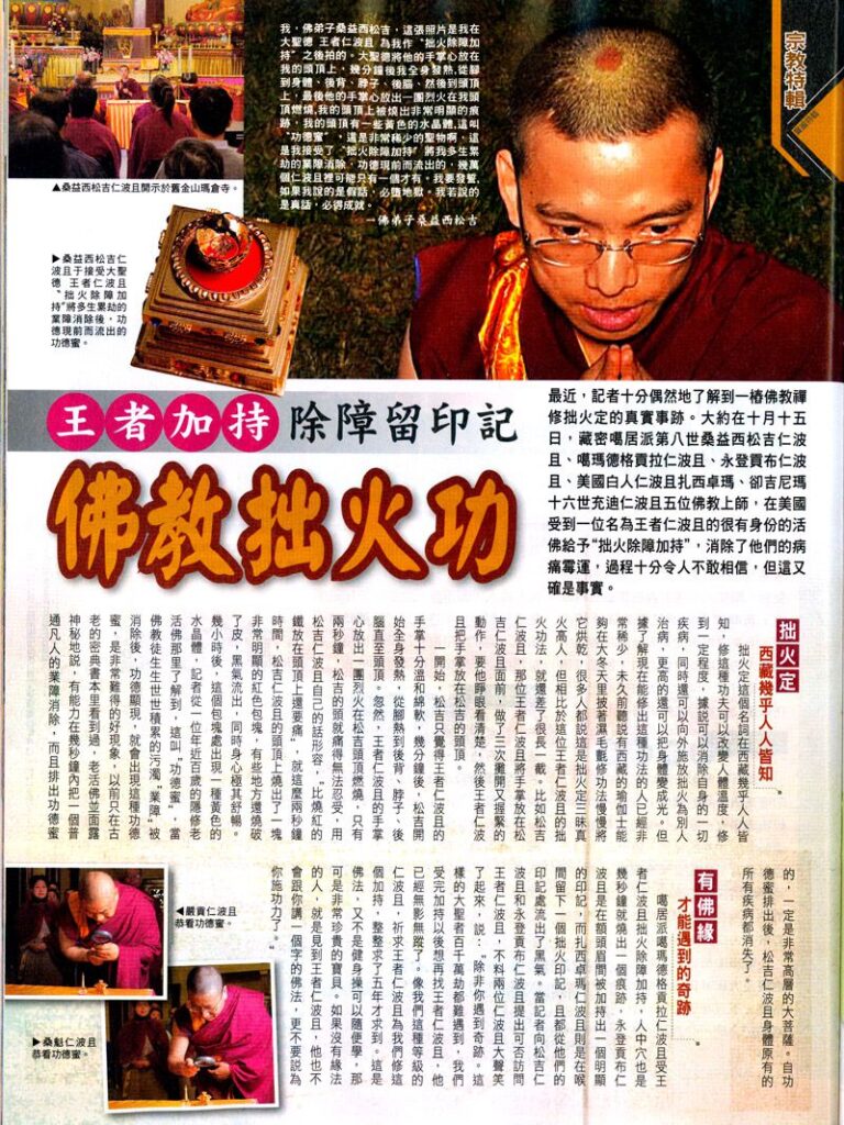 Wangzha Shangzun has been holding these holy tests for Buddhists. There are a lot of information about these.